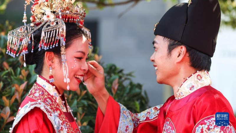 أقيم حفل الزفاف الجماعي الثالث على الطراز الصيني القديم في تشانغشا بمقاطعة هونان مساء يوم 2 ديسمبر الجاري.