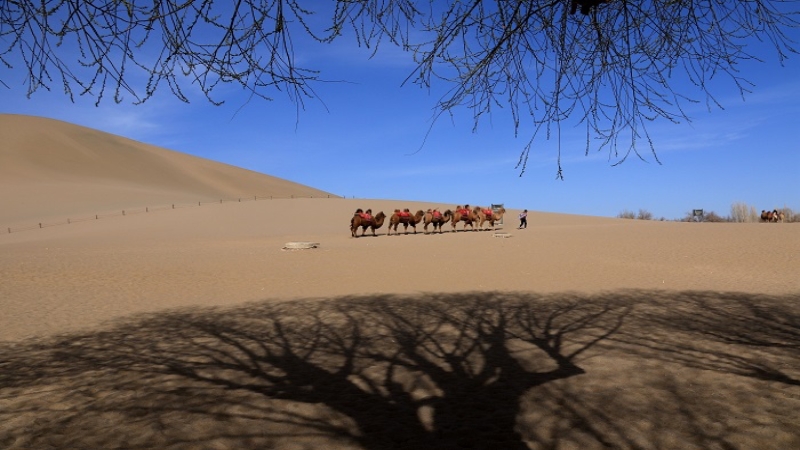 يُعرف جبل مينغشا الصحراوي أحد المناظر الطبيعية الخلابة في دونهوانغ، ويستقبل عشرات الآلاف من السياح من الداخل والخارج يومياً خلال ذروة الموسم السياحي، ومن الشائع ضياع السياح هواتفهم في الرمال عند الرحلة.