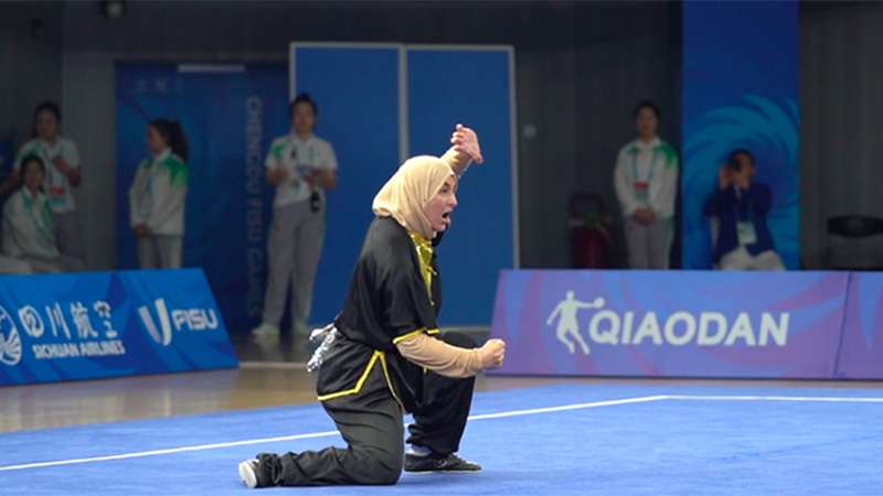 بعد أن شاركت في منافسات نانتشيوان في بطولة الووشو ضمن فعاليات دورة الألعاب الجامعية في تشنغدو، ابتسمت لاعبة الفنون القتالية الجزائرية لويزة آيت مولود، وحازت على تصفيق كبير.v
