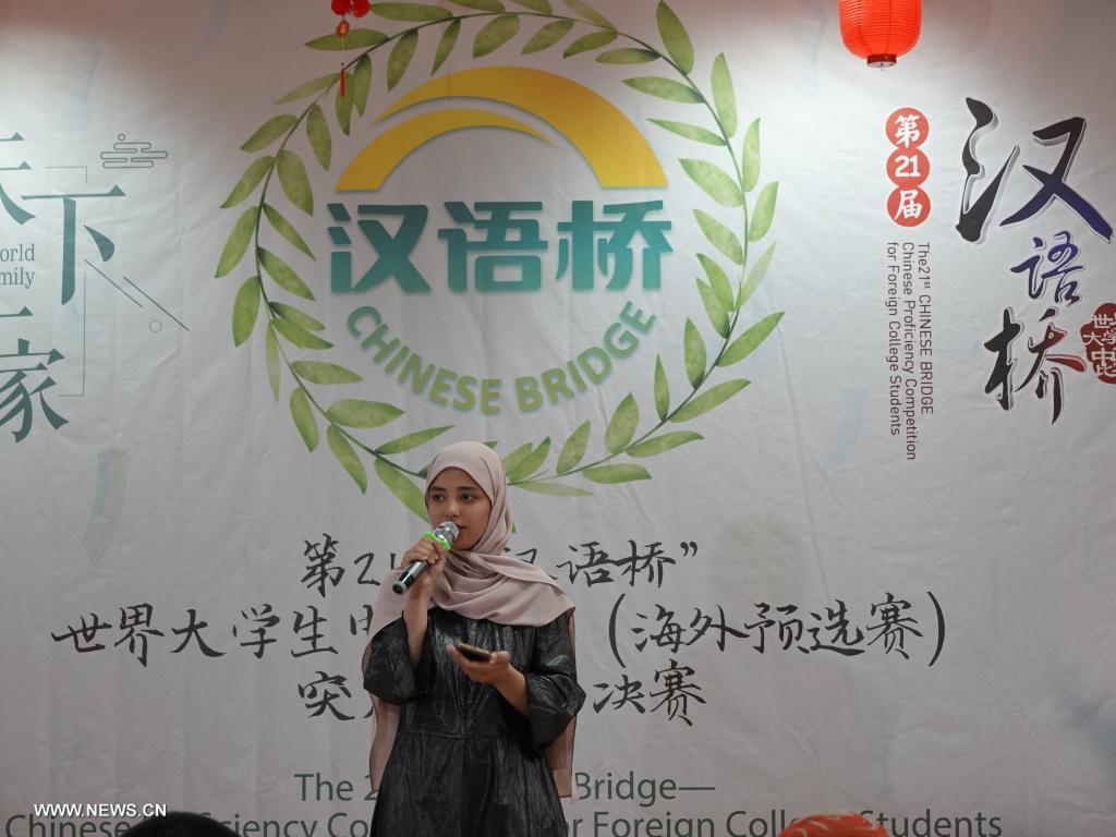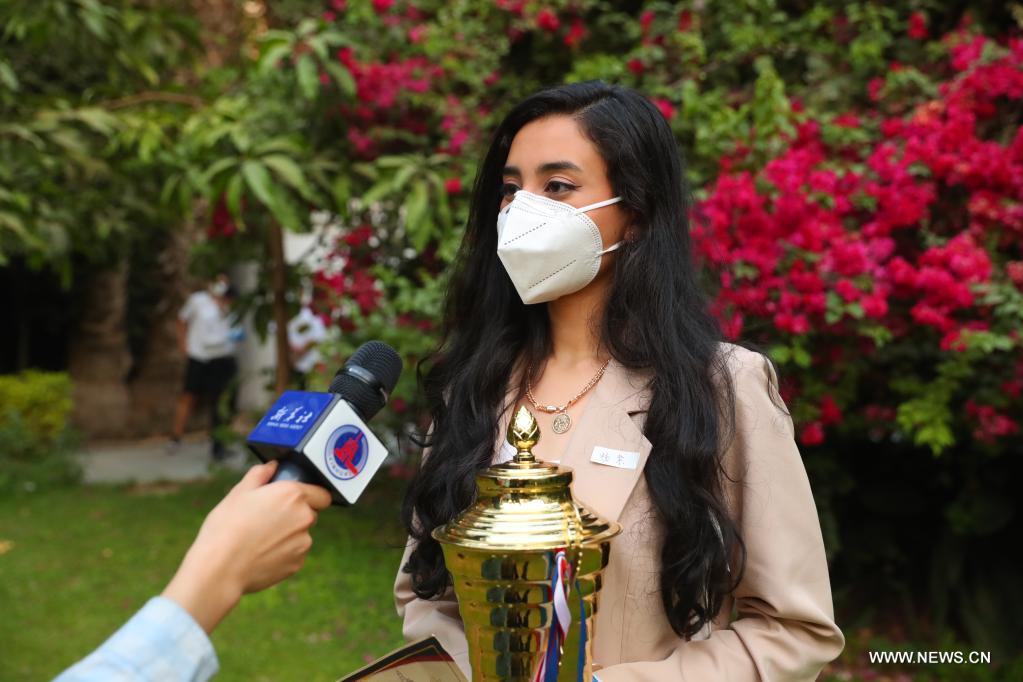 "المشاركة في مسابقة جسر اللغة الصينية بمثابة تحد لي لقهر مخاوفي وتعلم لغة فريدة في العالم"، هكذا قالت ملك إيهاب الطالبة في المرحلة الثانوية بمدرسة "الصداقة المصرية الصينية"، والتي فازت بالمركز الثاني في المسابقة.