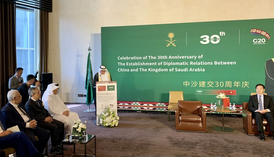 أقامت سفارة المملكة العربية السعودية لدى الصين حفل استقبال اليوم الثلاثاء، بمناسبة الذكرى السنوية الـ30 لتأسيس العلاقات الدبلوماسية بين الصين والسعودية، بحضور تركي بن محمد الماضي السفير السعودي لدى الصين، و تشاي جيون المبعوث الصيني الخاص للشرق الأوسط، إلى جانب السفراء الصينيين السابقين لدى السعودية، وسفراء من الدول العربية لدى الصين.